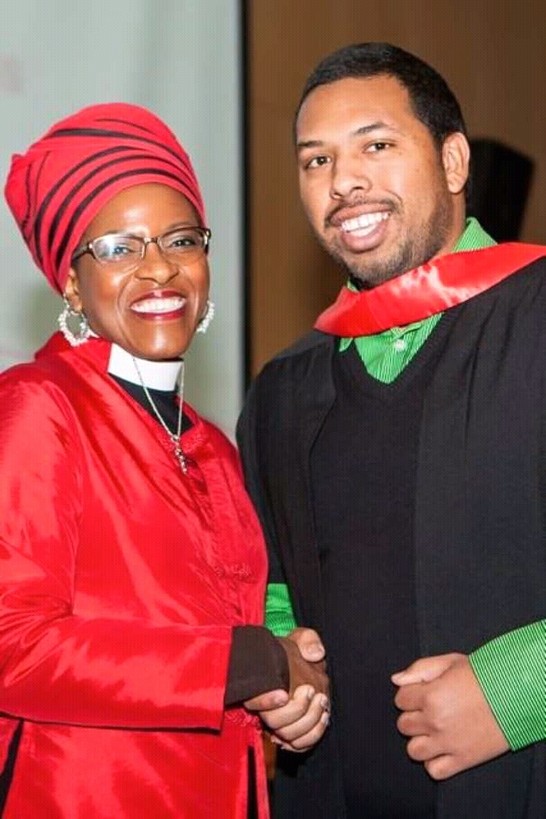 Each year H1 Holdings sponsors the cost of a student to complete a Bachelor in Business Administration. This year’s student is Furnill Manus from Wellington, who is doing particularly well with his specialisation in Entrepreneurship and Leadership. The photo features Furnill at his Higher Certificate in Business Administration graduation with Mpho Tutu.